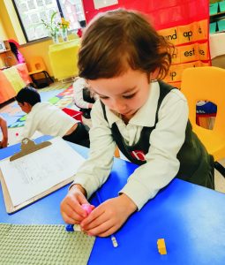 In our Literacy program, reading is taught phonetically and by the end of Junior Kindergarten the children are able to begin reading simple phonetic books. They are initially encouraged to print in lower case letters as their readers are in lower case print. Their progress is tracked using a reading assessment tool designed to provide the teacher with specific strategies needed to monitor and stimulate the development of each student’s literacy skills.